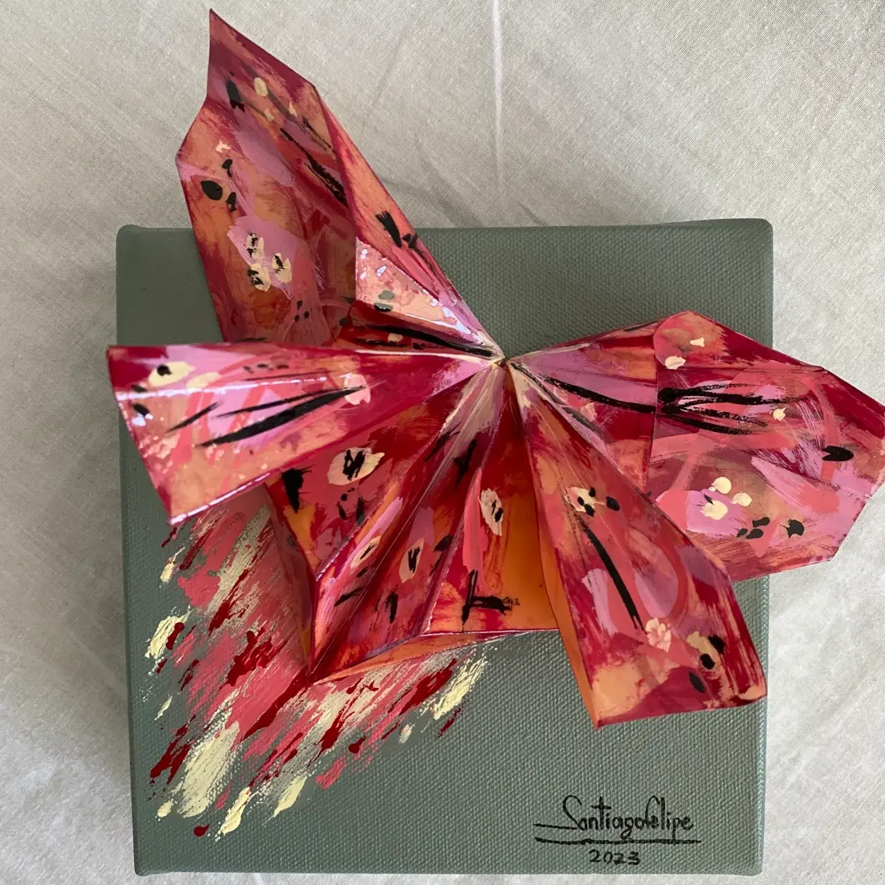 • Descripción: está es una colección de varias obras. Le hace homenaje a la fugaz vida de las mariposas, que dejan su huella por donde pasan con su belleza y el asombroso proceso de su transformación.